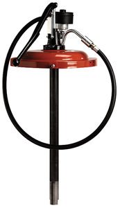 Drum cover design clamps - on 120lb . drums with 15" I .D . Smooth, easy pumping action no cranks or gears dispenses all types of gear lubricants even in the coldest weather Cast - iron outlet body and handle provide durability and longevity Includes non - totalizing meter with air expeller prevents air from registering on meter Mobile base with replaceable casters Baked enamel finish prevents rust and corrosion